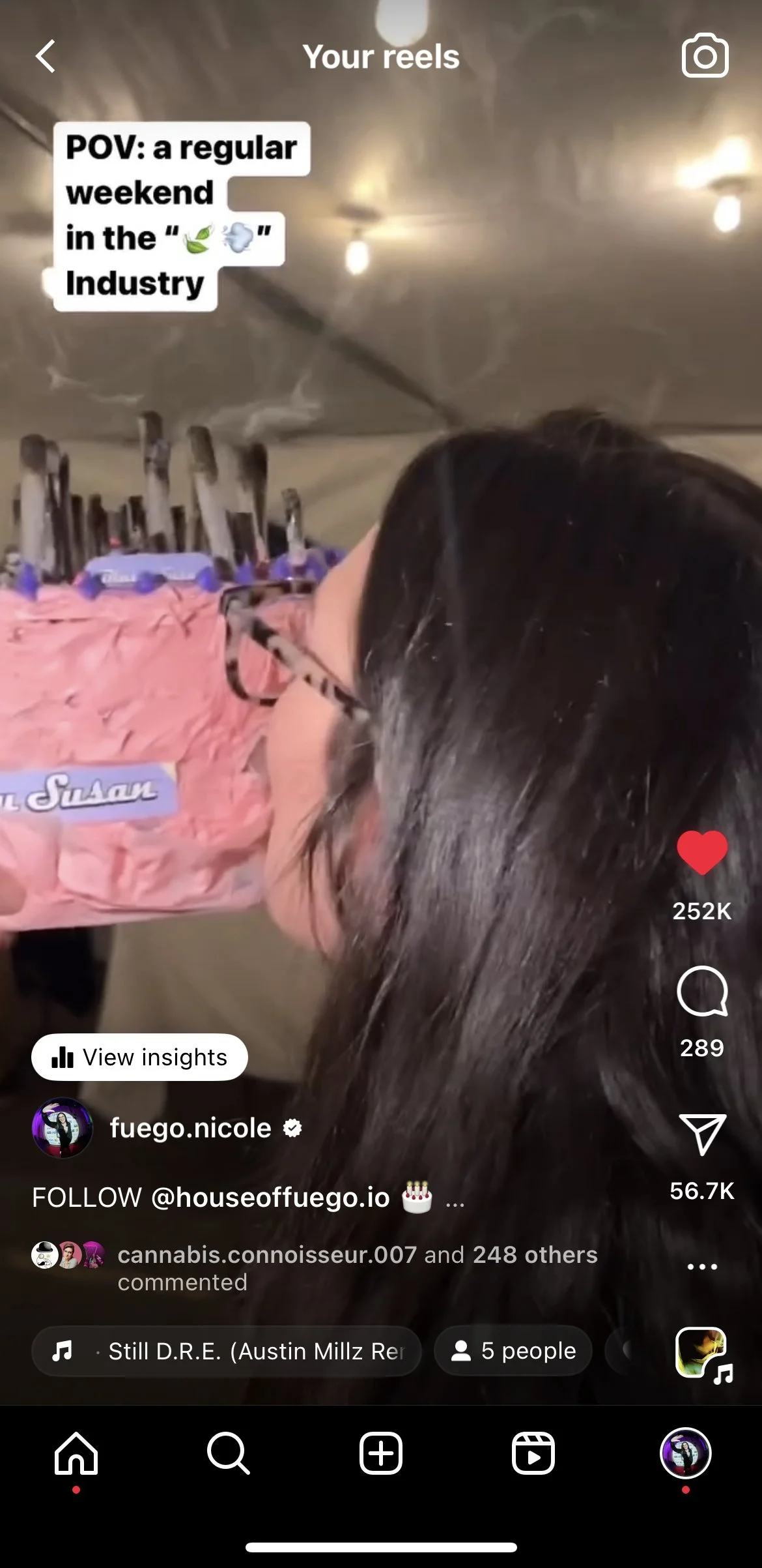 In October 2022, Nicole went viral for a video from Izzy Blaze’s Backyard Boogie, hosted at River Bar in Denver. The video features a preformance by Alicia Goku and birthday cake full of joints made by Earth Smokes a Lot. The video generated 2.4 million plays, 252,540 reactions, 289 comments, 56,000 shares, and a 2,500 follower gain. See the video here.